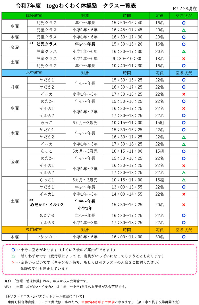 togoわくわく体操塾 令和7年度新規入会者受付を下記のとおり実施します。