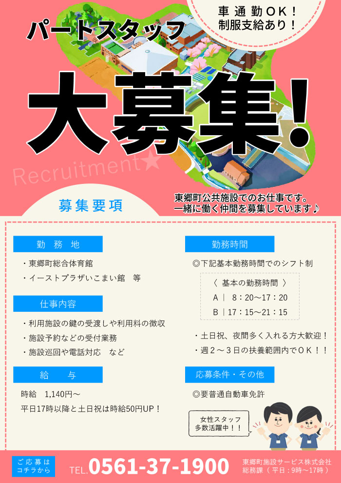 総合体育館またはいこまい館で一緒に働いてくれる方を募集しています!