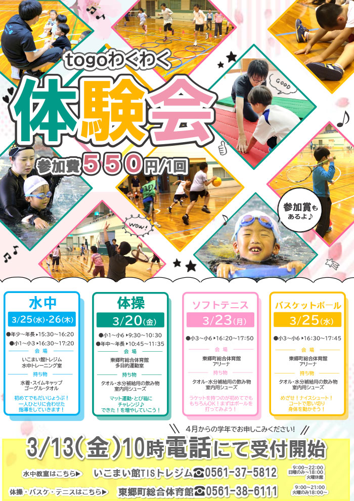 新年度に向けて、togoわくわく体操塾の体験会を開催します。