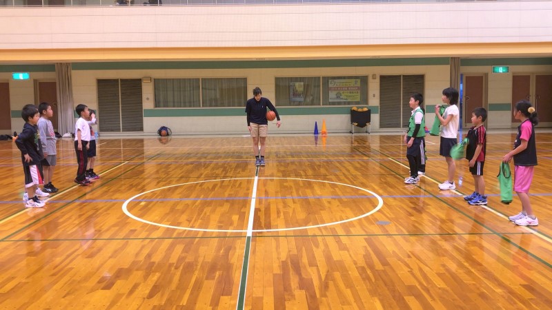 バスケットボールに慣れることから始め、ドリブル・パス・シュートなどの基本動作を中心に行います。
