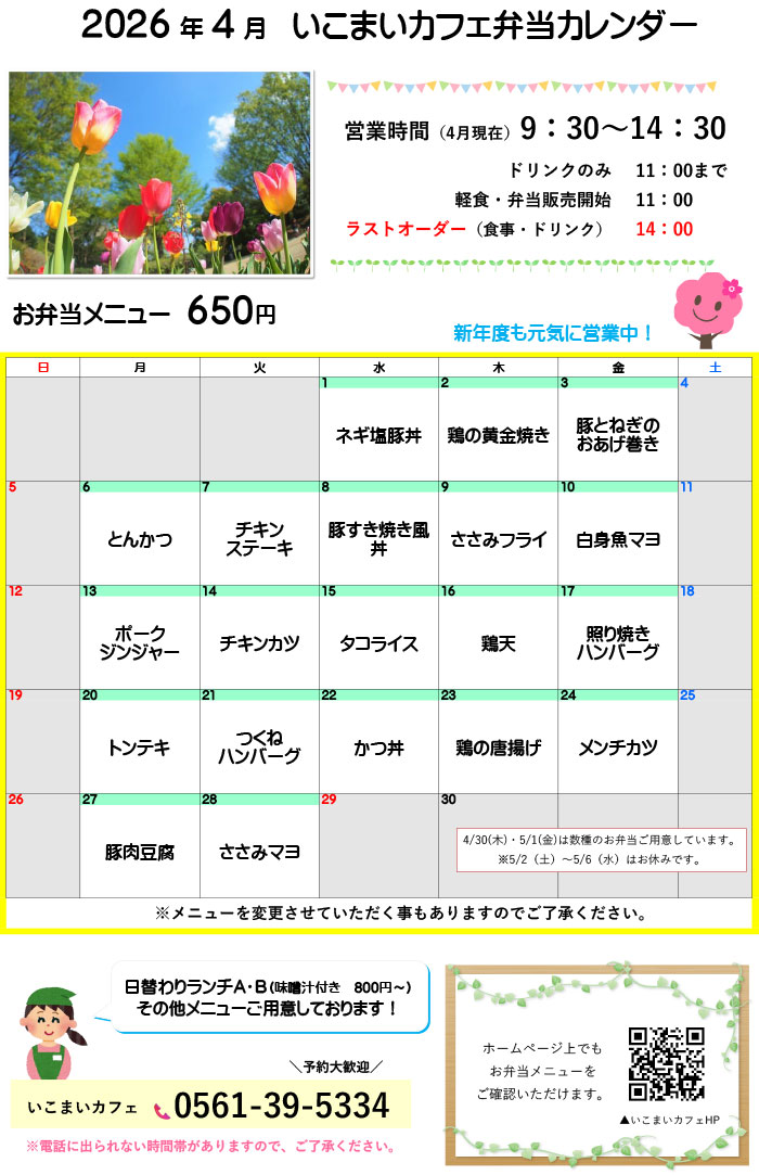 4月弁当カレンダーダウンロード