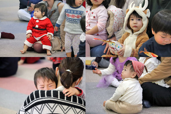 ポーズはサンタ・トナカイ・ゆきだるまの三種類。スタッフの歌と掛け声の合図に合わせて、親子でまねっこ遊びをする姿がとてもかわいかったです。